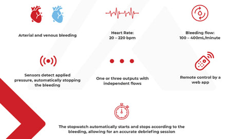 The Hemorrhage-X3 is a bleeding simulation pump designed to enhance trauma training scenarios by simulating arterial and venous bleeding.